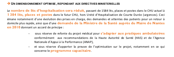 En fait, le projet était bel et bien de réduire le nombre de lits, comme indiqué dans le "Dossier d'autorisation environnementale unique" disponible à la Préfecture de Loire Atlantique
